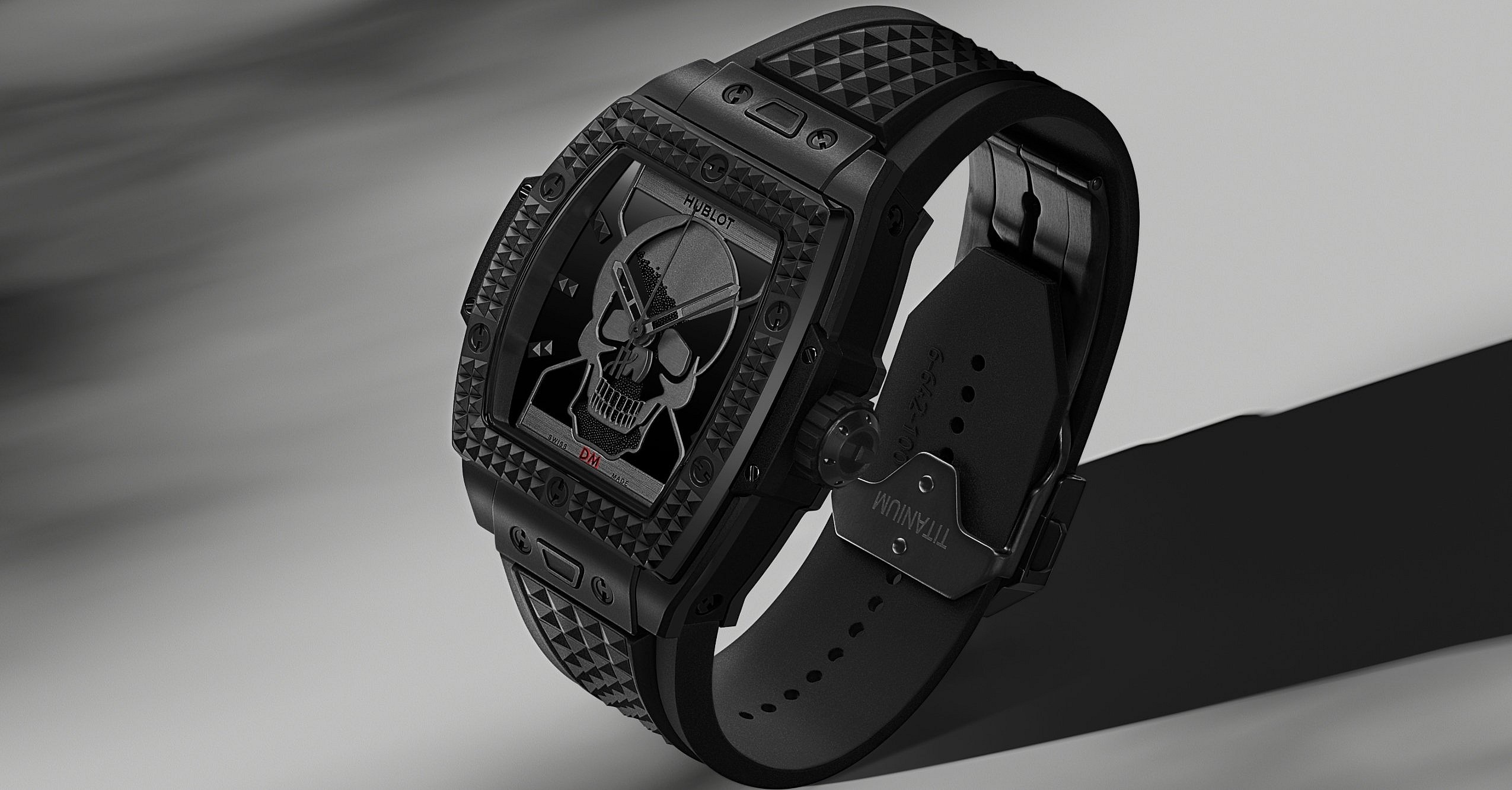 The sinister-looking ticker that supports that environmental mission is the Spirit of Big Bang Depeche Mode, a decidedly dark timepiece featuring a polished black ceramic 42mm case and a dial emblazoned with a grinning skull.