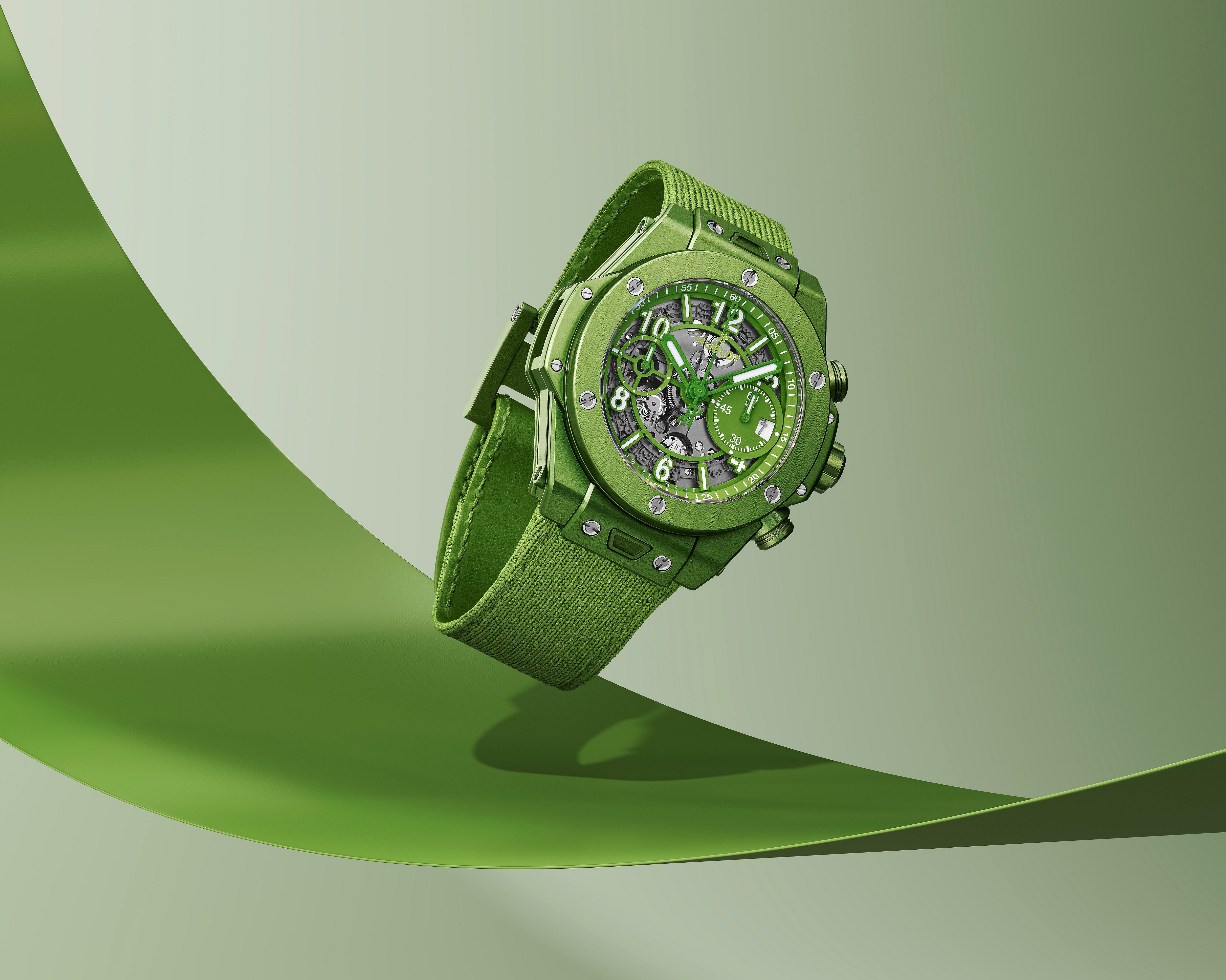 It’s an ingenious turn that shifts an already covetable watch into high gear. As Hublot fittingly says, it’s a hyper-sustainable approach resulting in a watch that travels “from coffee cup to wrist.”