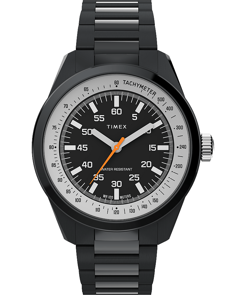 Billed by Huckberry as a “bold reissue of a Timex classic,” the OG version of this racing-inspired watch (not unlike a Porsche Design timepiece, at least at first glance) was also a covetable vintage watch collectible, according to Timex. The new version pays homage in tasteful fashion to its predecessor, using a 41mm titanium case for modern durability, along with a stainless steel, all-black strap.