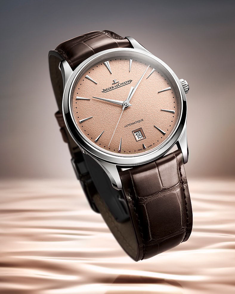 In the case of this week’s new series of updates to the Jaeger-LeCoultre Master Ultra Thin, dial color makes the difference, with the copper-grained finish billed as a “distinctive new shade” that elevates each timepiece. In fact, the watchmaker took great care to select the proper shade for each dial, leaving no stone unturned, with the color “contrasting with the cool shine of the polished stainless-steel cases,” further noting that “the subtle texture and warm color of the dials brings fresh animation to the timeless aesthetics and technical virtuosity for which the Master Ultra Thin collection is renowned.”