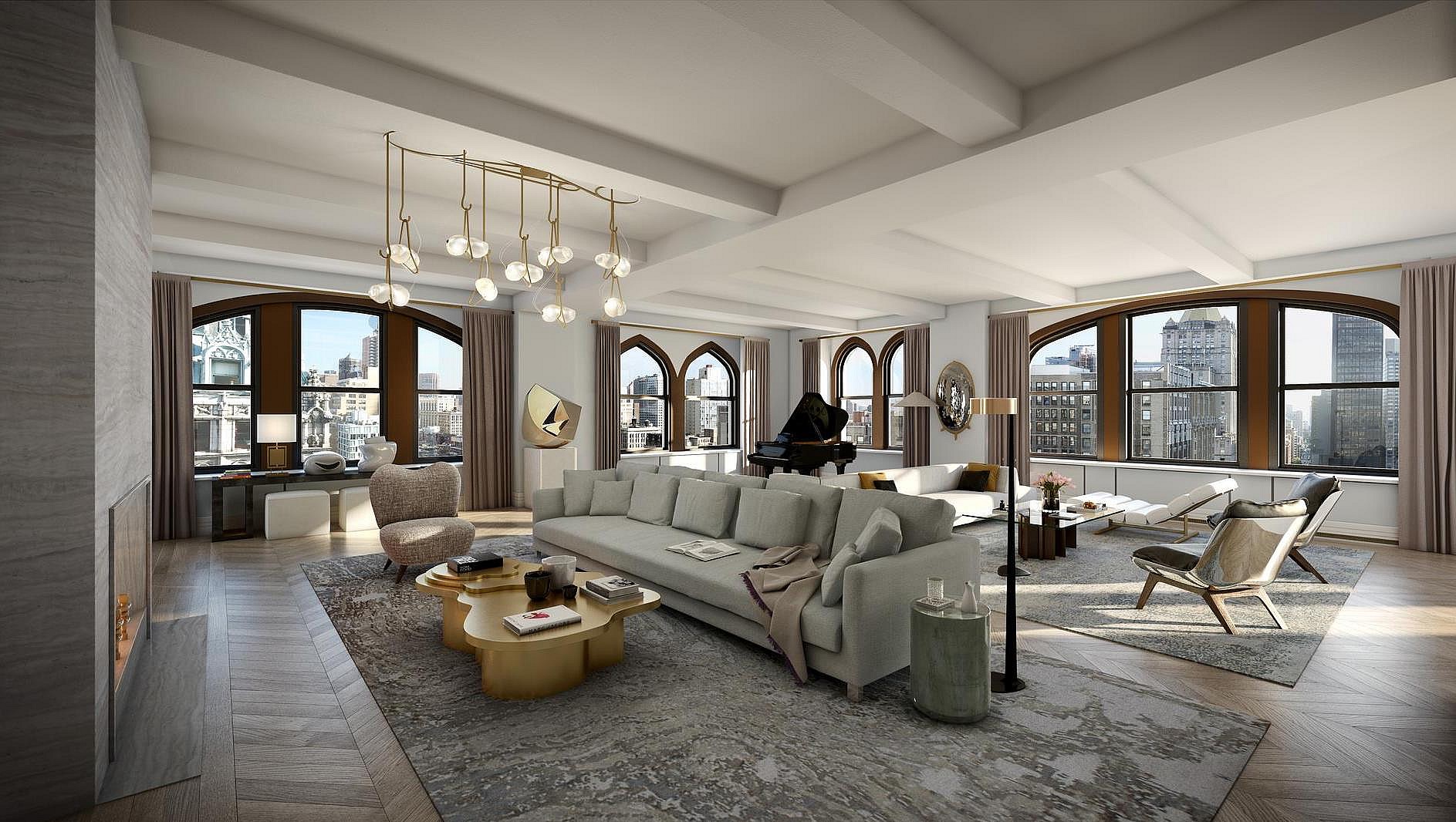 His new collection of expensive homes includes a three-floor 10,079 square foot penthouse at 212 Fifth Avenue as well as the two units below, giving him a grand total of 17,000-square feet of prime real estate – – all for an eye-watering $80 million.