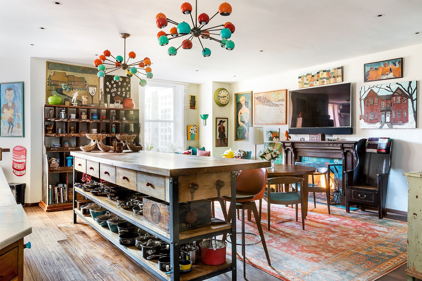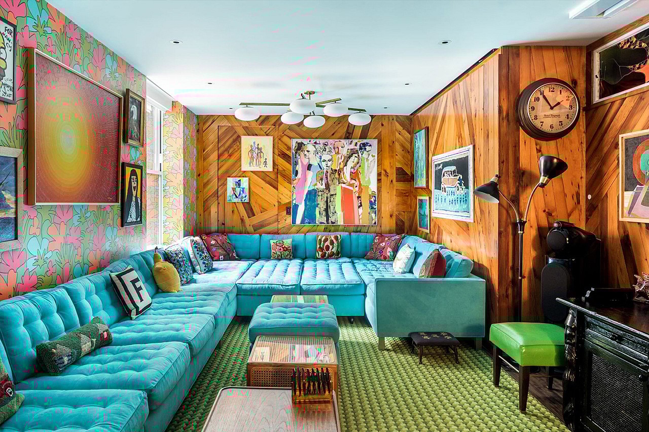 Now the impressive urban abode spans nearly 5,000 square feet. The first level alone features a foyer, spacious living room decorated with vintage wallpaper, an eat-in kitchen, two bedrooms and bathrooms, a private office, and laundry room.
