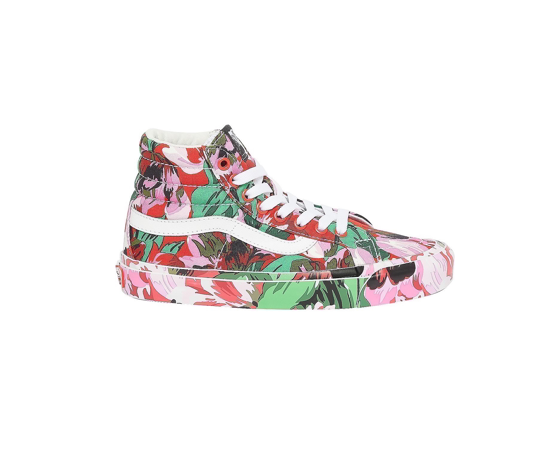 The headlining pieces are Sk8-Hi high-top and Old-Skool low-top sneakers, both of which are clad in one of three Kenzo floral prints and feature the iconic skate shoe brand’s sidestripe.