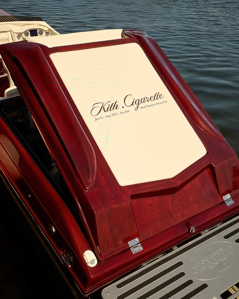 Don Aronow’s Cigarette Racing has proven an institution in its own right since its 1969 founding, defining the class of narrow, ultra-sleek speedboats built for racing. KITH notes that these boats sprang to life for offshore racing, but have since been used on the open water in electrifying fashion. For a company that views itself (rightly) as a tastemaker, it’s an entirely new way to live the KITH lifestyle.