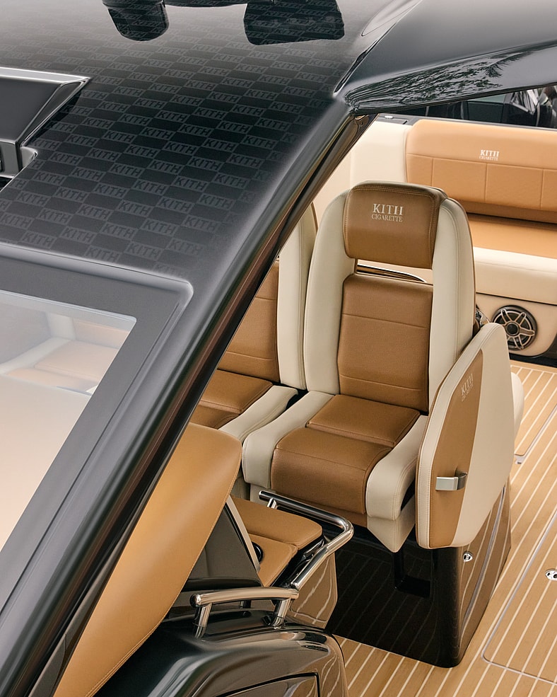 The 42′ X, on the other hand, features a handsome blend of white and brown throughout, plus the KITH Crest logo and detailing on everything from its seats to its speedometer, touches that KITH said “give it a classic, timeless appeal.”