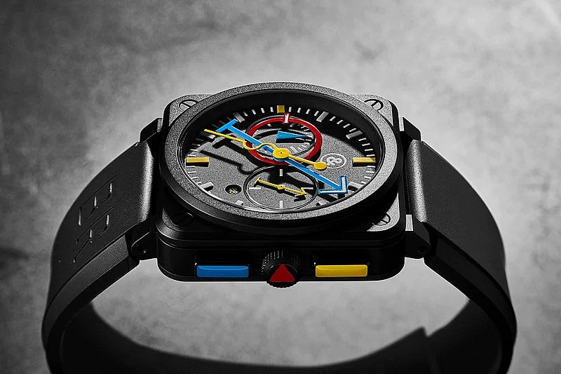 As Grail Watch notes, the design of the Klub 22, for instance, takes a turn as the watch hands “transform into functional geometric shapes,” and the Krono 22 boasts a colorful seconds hand that is the largest Bell & Ross has ever fitted onto a chronograph.