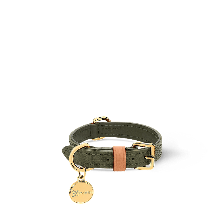 Men’s Creative Director Pharrell Williams puts his distinctive stamp on the new line, reworking signature motifs into collars, harnesses, leashes and carriers that look ripped from a fashion runway rather than the local dog park. The LV-branded collars, leashes and harnesses — blinged out with reinforced clips, adjustable buckles and cushioned handles — nod back to Vuitton’s original Monogram dog kennel introduced in 1913.