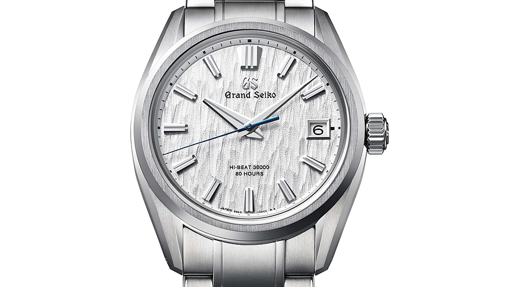 The textured dial is inspired by the white birch tree forests that grow in northern parts of Japan, as seen near the Grand Seiko Studio Shizukuishi where all Grand Seiko mechanical watches are made.”
