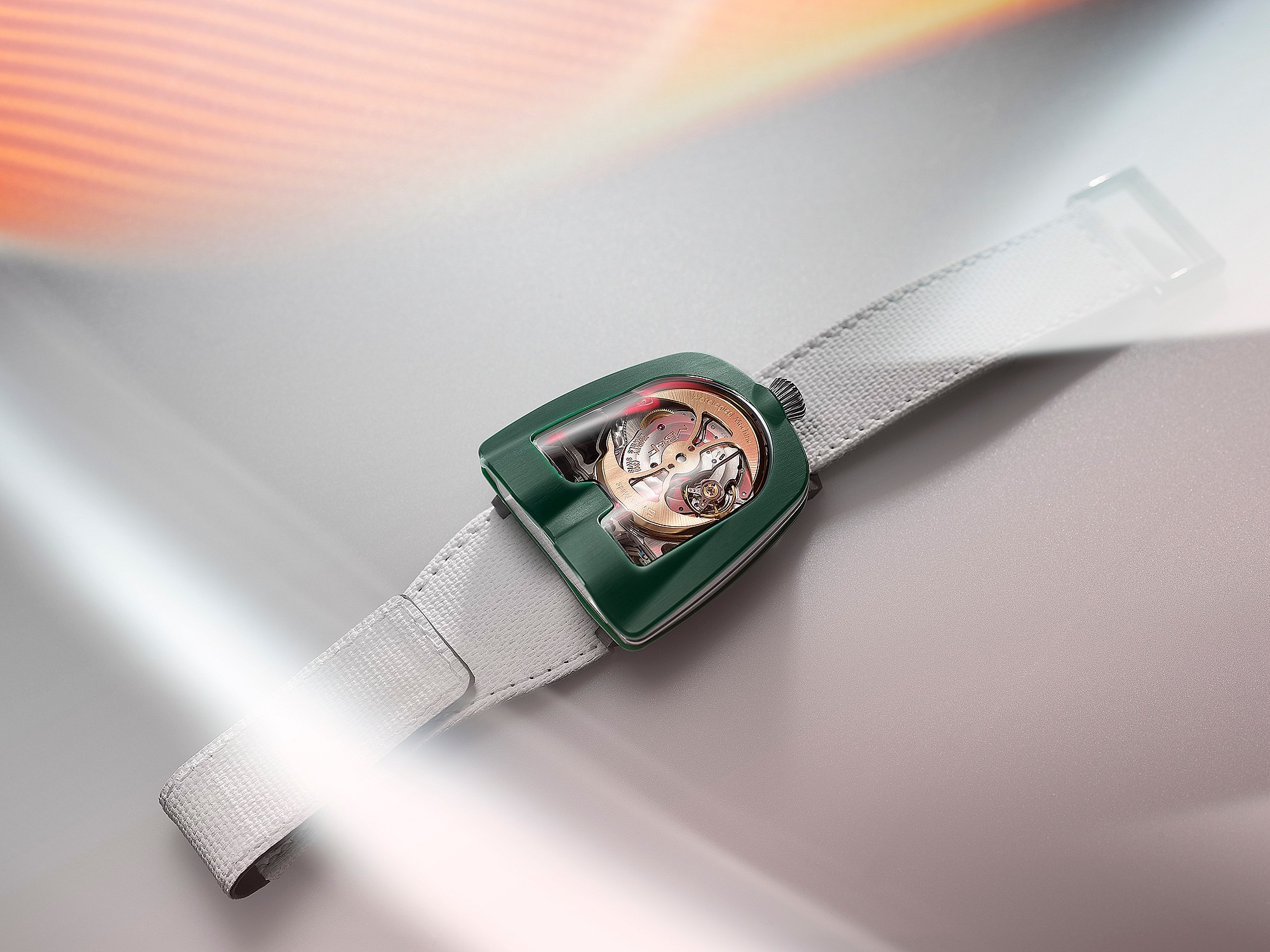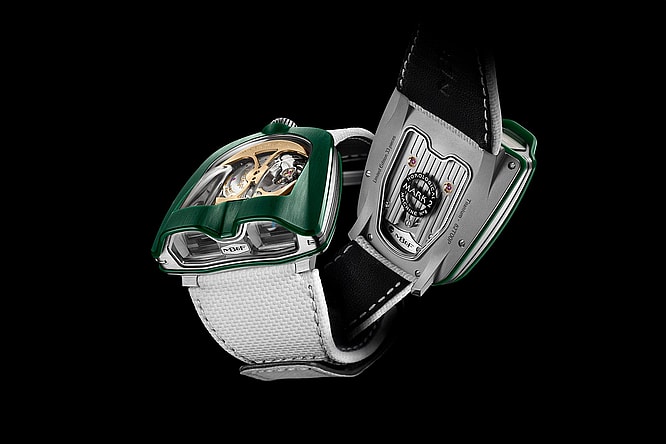 Priced from $78,000, the HM8 Mark 2 is available in two colorways—British racing green with a 22-karat gold rotor and turquoise minute markers, or white with a green rotor and light green minute markers. Total production is limited to 33 units.