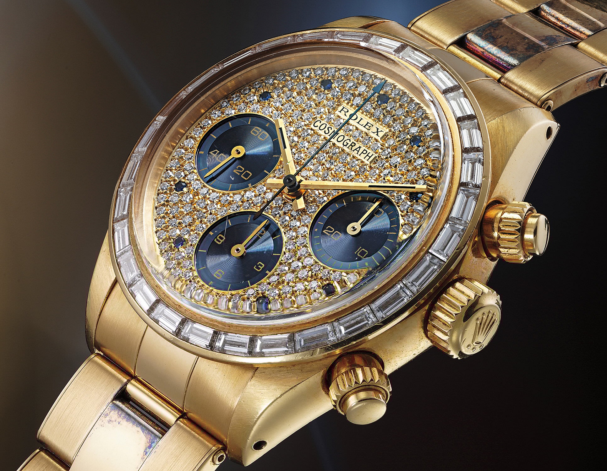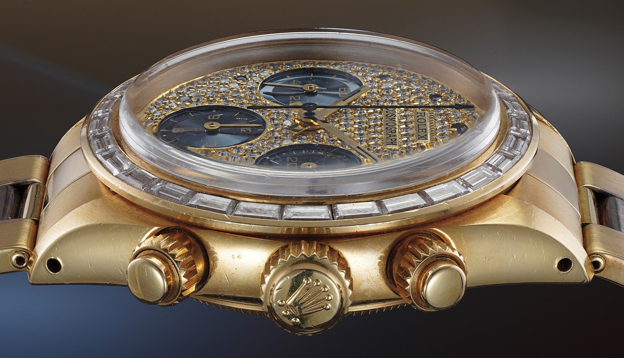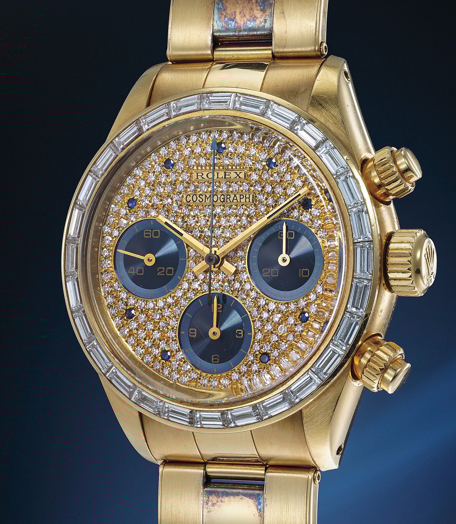 Phillips said that only the Sultan of Oman, perhaps Rolex’s most important client ever, could have convinced the otherwise staid Swiss luxury watch brand to produce such a flashy watch, which was “beyond outlandish” for the time. “Now of course bejeweled Daytonas are all the rage, but 40 years ago it was unheard of,” notes Paul Altieri, Founder and CEO of high-end luxury timepiece retailer Bob’s Watches, who himself owns one of the world’s top Rolex collections. “With time however this piece has morphed into a true classic.”