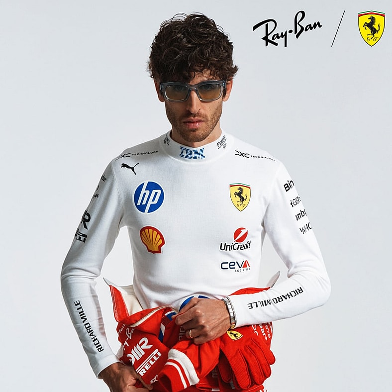 Ray-Ban and Scuderia Ferrari HP are celebrating race weekend with the debut of a new, limited edition shades style. The Ray-Ban x Scuderia Ferrari Miami Special Edition (RB2228M) features a transparent blue acetate frame designed to reflect Miami’s sun-soaked aesthetic, paired with signature Scuderia Ferrari HP detailing. The standout design element is a two-tone gradient lens that shifts from deep blue to vivid yellow, evoking the look of the city’s skyline and neon glow. The result is bold, performance-inspired frames that are designed to channel speed, light and motion. The special edition sunnies are part of the ongoing Ray-Ban for Scuderia Ferrari collection, which blends racing heritage with cutting-edge eyewear design. The Miami Grand Prix-themed sunglasses retail for $305 at Ray-Ban.com.