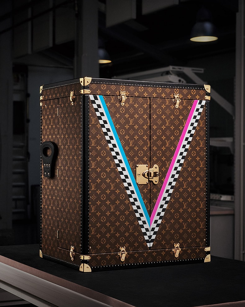 Louis Vuitton is promoting presence at the Miami Grand Prix with a one-of-a-kind Trophy Trunk that brings the French luxury house’s signature craftsmanship to one of F1’s most vibrant destinations. Inspired by Miami’s Art Deco heritage, the custom trunk features Louis Vuitton’s signature Monogram canvas alongside a “V” motif symbolizing both victory and Vuitton. Pink and blue hues nod to the city’s electric energy, while black-and-white Damier detailing channels the race’s checkered finish line.