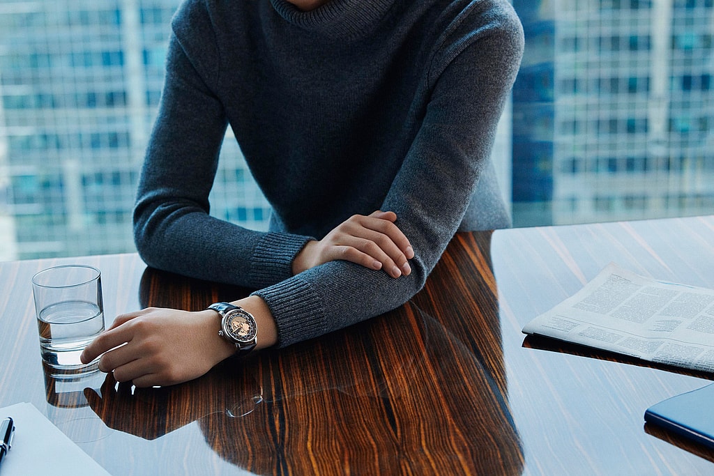 No stone has been left unturned in its design: One edition of the watch features a rose gold-coated continents, meridians, hands and indication detailing on the dial.