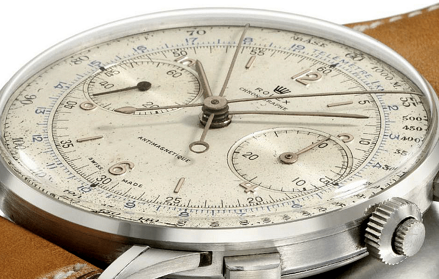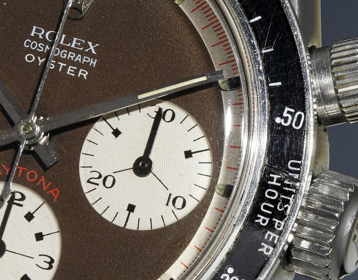 Only a few examples of the to-kill-for Ref. 4113 split-seconds chronograph are known to exist, and a nearly identical one holds the record for the most expensive Rolex in the world. 12 pieces were originally presented to a select group of racing teams and their drivers by Rolex who were active in sponsoring racing events at the time, and they were never available for sale.
