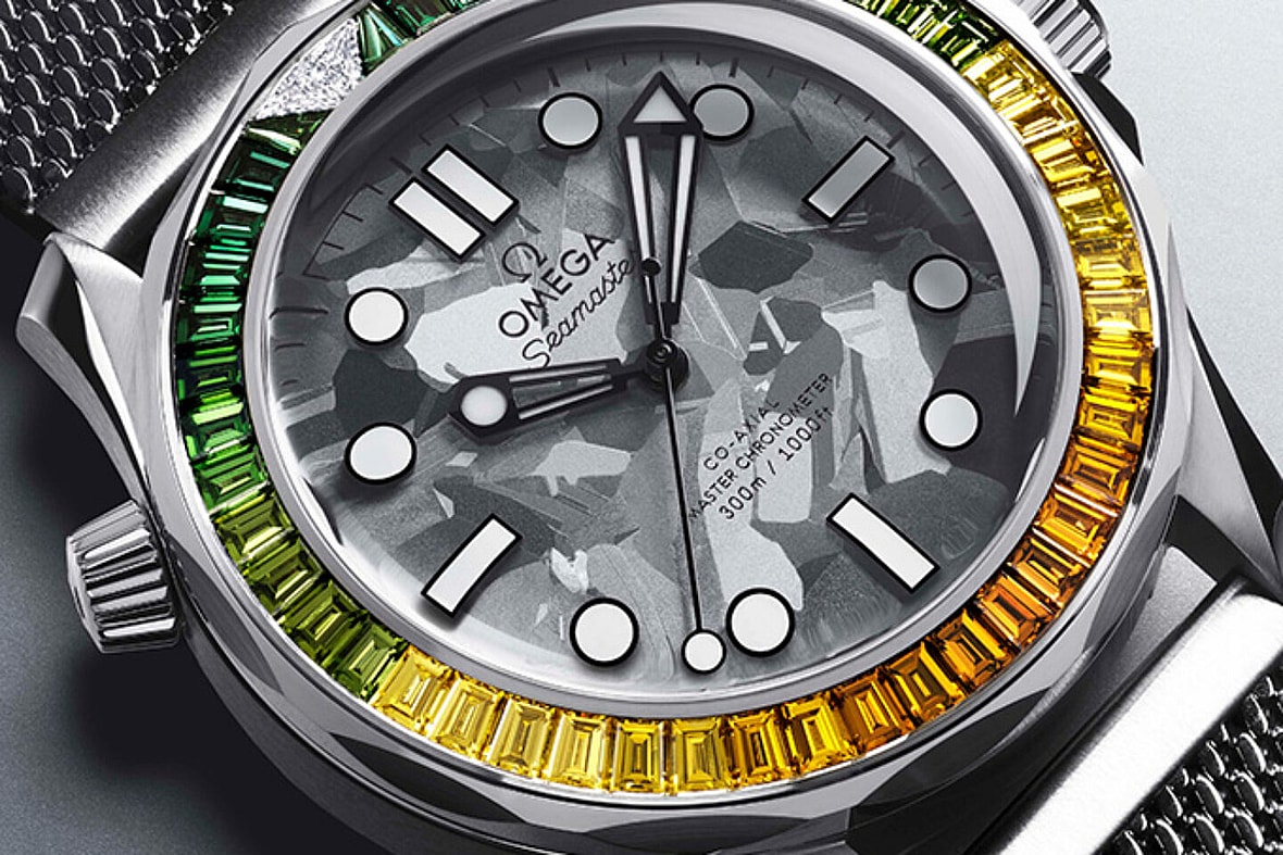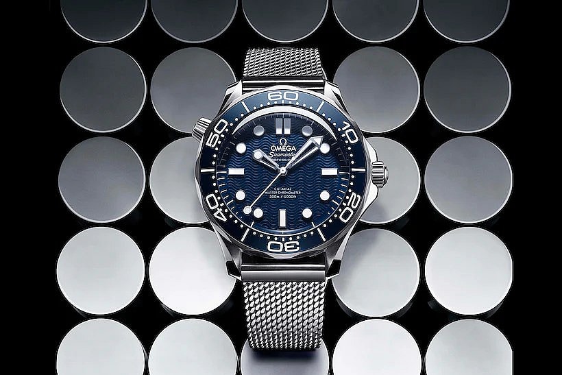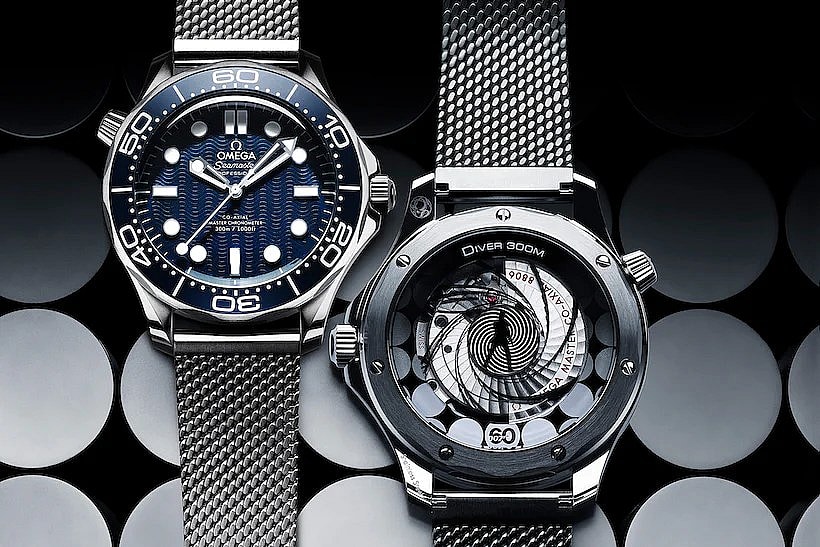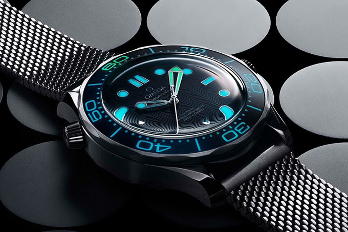 To bridge the gap between decades, the timepiece is outfitted with a vintage-leaning mesh bracelet design favored by Daniel Craig in No Time To Die.