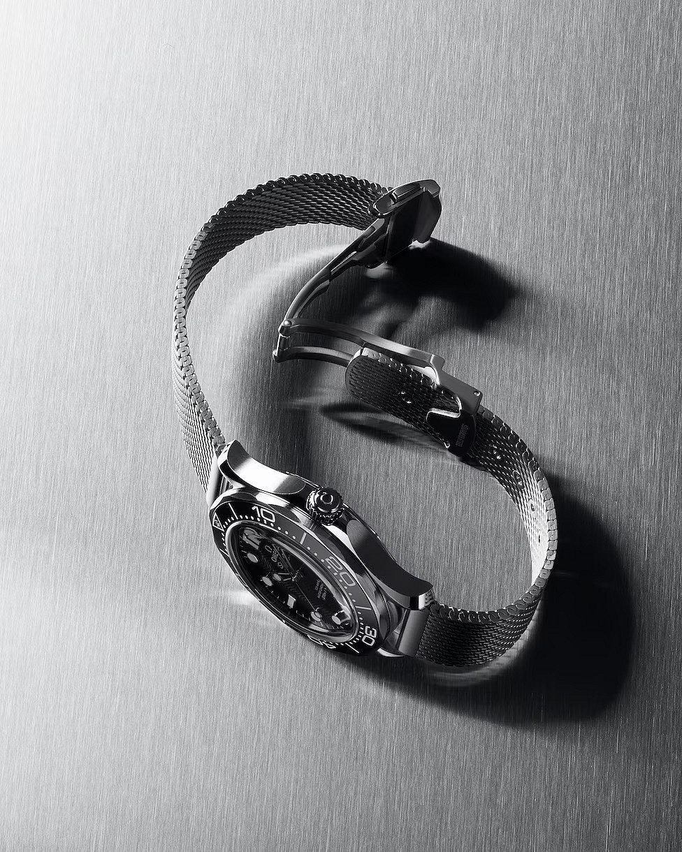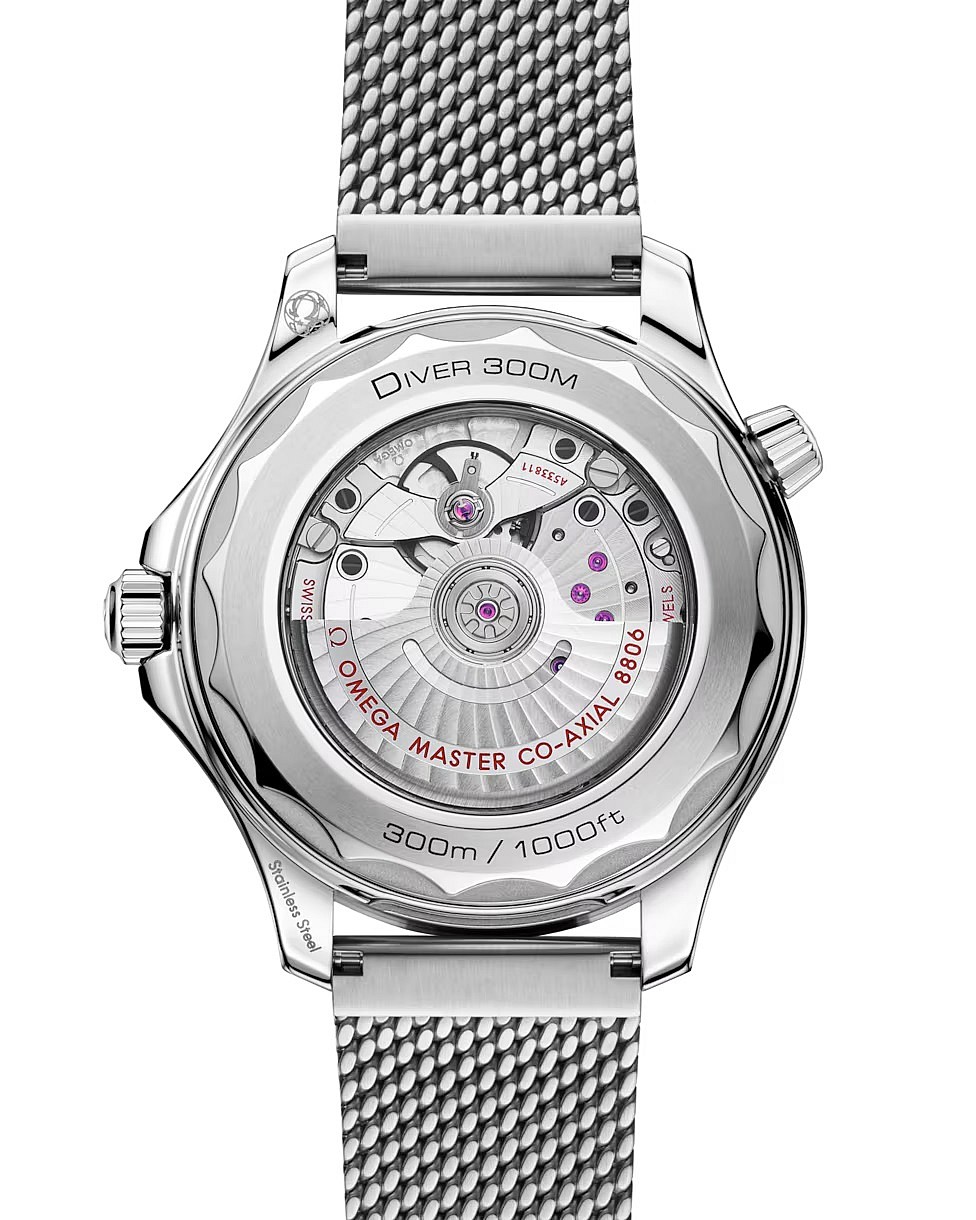 There are also features that offer a more refined change of pace than certain renditions of the 007 Edition Seamaster, in this instance a sleek mesh bracelet for a touch of dressy appeal. Omega also notes that each variation of the Seamaster Diver 300M features its Co-Axial Master Chronometer Calibre 8806, not unlike pricier editions sported by Bond, James Bond.