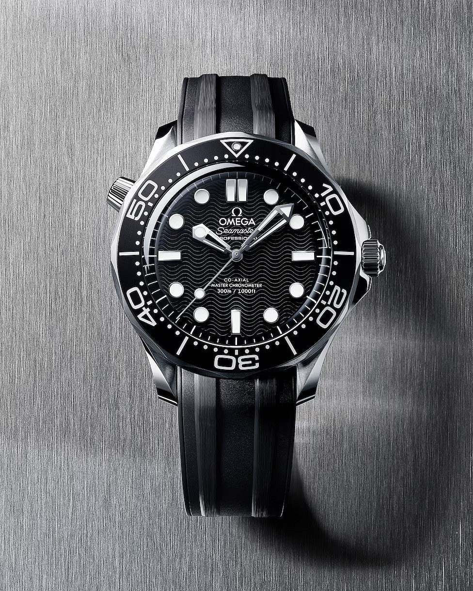In fact, not one but two new takes on the Omega Seamaster Diver 300M just hit the market, one in a stainless steel-on-steel build ($6,500), and one with a stainless steel case and sporty rubber strap ($5,900), each with two dial variations apiece.