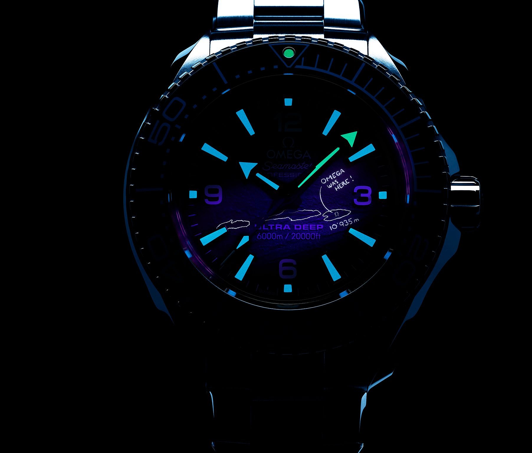 A UV light reveals a playful drawing highlighting the depth and location of the dive itself: It’s a one-of-a-kind update to a highly functional timepiece.