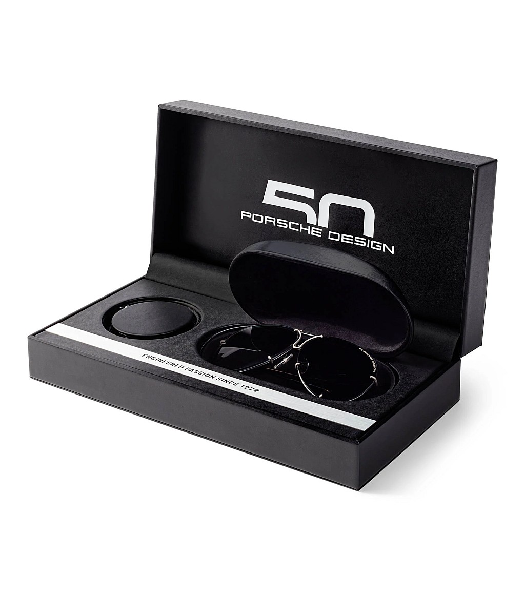 Satin-gloss platinum accents finish off each pair handsomely, and it’s a plus that the display box and the sunglasses themselves are both emblematic of Porsche Design’s commitment to quality and individuality.