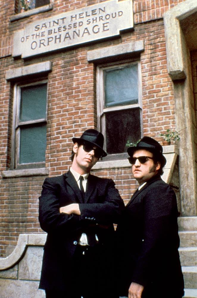 The Blues Brothers uniform was simple: Wayfarers, matching dark suits, skinny ties and fedoras.
