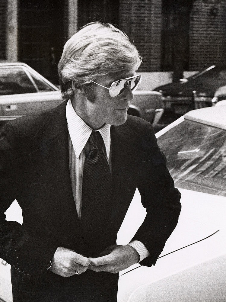 Robert Redford was the epitome of ’70s style rocking Aviators with mirrored lenses.