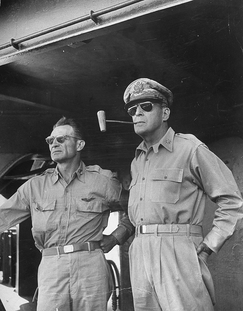 General Douglas MacArthur soldiered through WWII in classic Aviators.