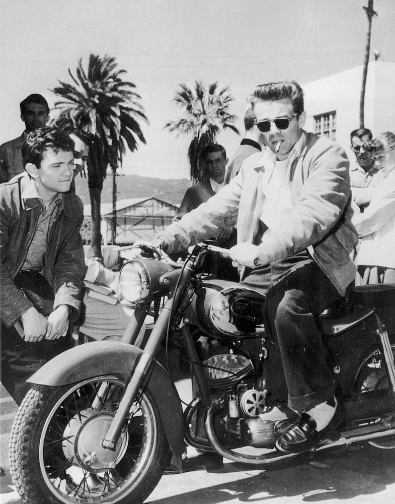 James Dean perfected his rebel vibe with Wayfarers, a smoke and a bike.