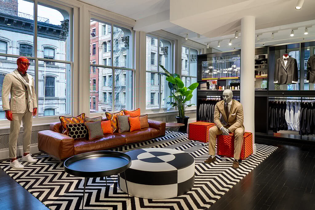 The atmosphere at the Soho location — complete with a rooftop bar for happy hour mingling — is a fine fit for anyone who loves tailoring that blends the classic and the modern. This writer selected a navy tropical wool suit with a matching vest, but customization options go well beyond that.