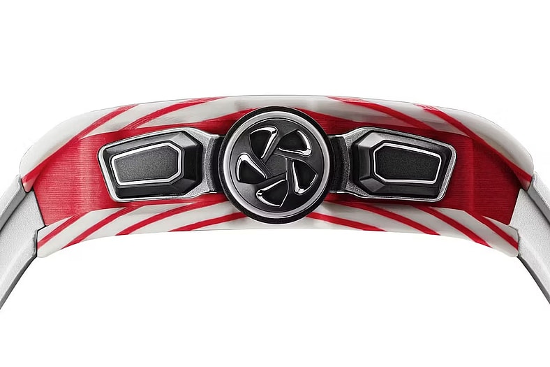 The new RM72-01 ‘Charles LeClerc’, on the other hand (or wrist, rather) is an automatic flyback chronograph powered by the company’s in-house CRMC-1 caliber movement and featuring a bold, Ferrari-inspired red-and-white, streamlined design (those colors also happen to be the national flag of Monaco). It boasts a bold square tonneau case design sized nicely at 38mm, suitably eye-catching both on and off the track.