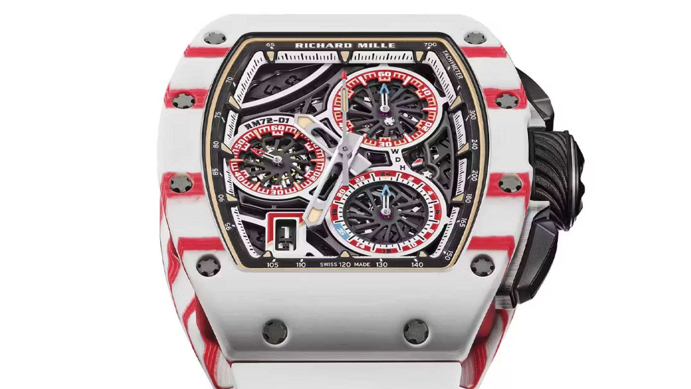 The new RM72-01 ‘Charles LeClerc’, on the other hand (or wrist, rather) is an automatic flyback chronograph powered by the company’s in-house CRMC-1 caliber movement and featuring a bold, Ferrari-inspired red-and-white, streamlined design (those colors also happen to be the national flag of Monaco). It boasts a bold square tonneau case design sized nicely at 38mm, suitably eye-catching both on and off the track.