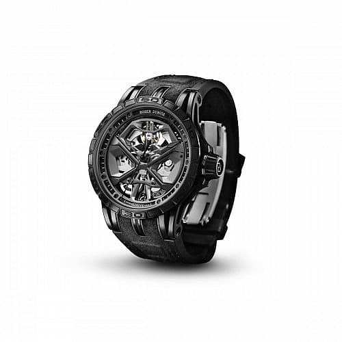 Swiss watchmaker Roger Dubuis’ new release has every bit of the energy of the supercar that shares its name. The all-black Excalibur Huracán was inspired by Dubuis’s collaboration with storied Italian carmaker Lamborghini. And in Lambo tradition, the watch bears a completely original construction style and sleek, souped-up vibe.