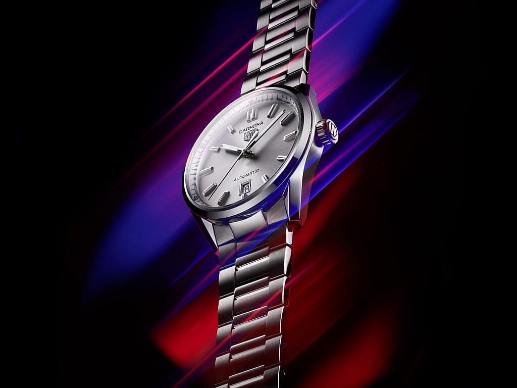 All get a stainless-steel case and bracelet with Tag’s “H” shaped links, save for one that’s paired with a leather strap. Dials branded with the CARRERA block text logo are offered in black, blue, white or silver.