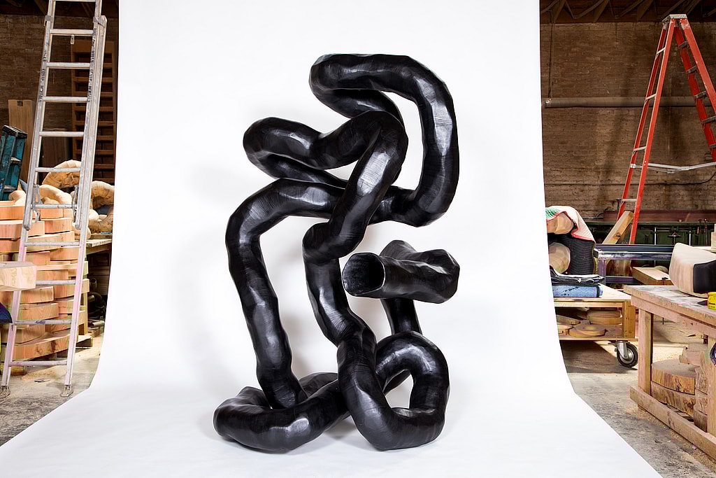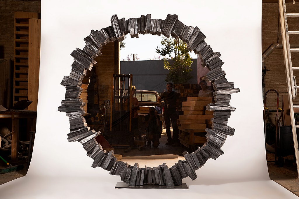 An appreciation for heavy machinery also stuck with him. At 19, Bishop started art school to earn an architecture degree, and ended up taking a woodworking elective. “As soon as I got into a woodshop, it was home,” he recalled. Wood came to represent “potential energy,” he added. “I wanted to create things out of it.”