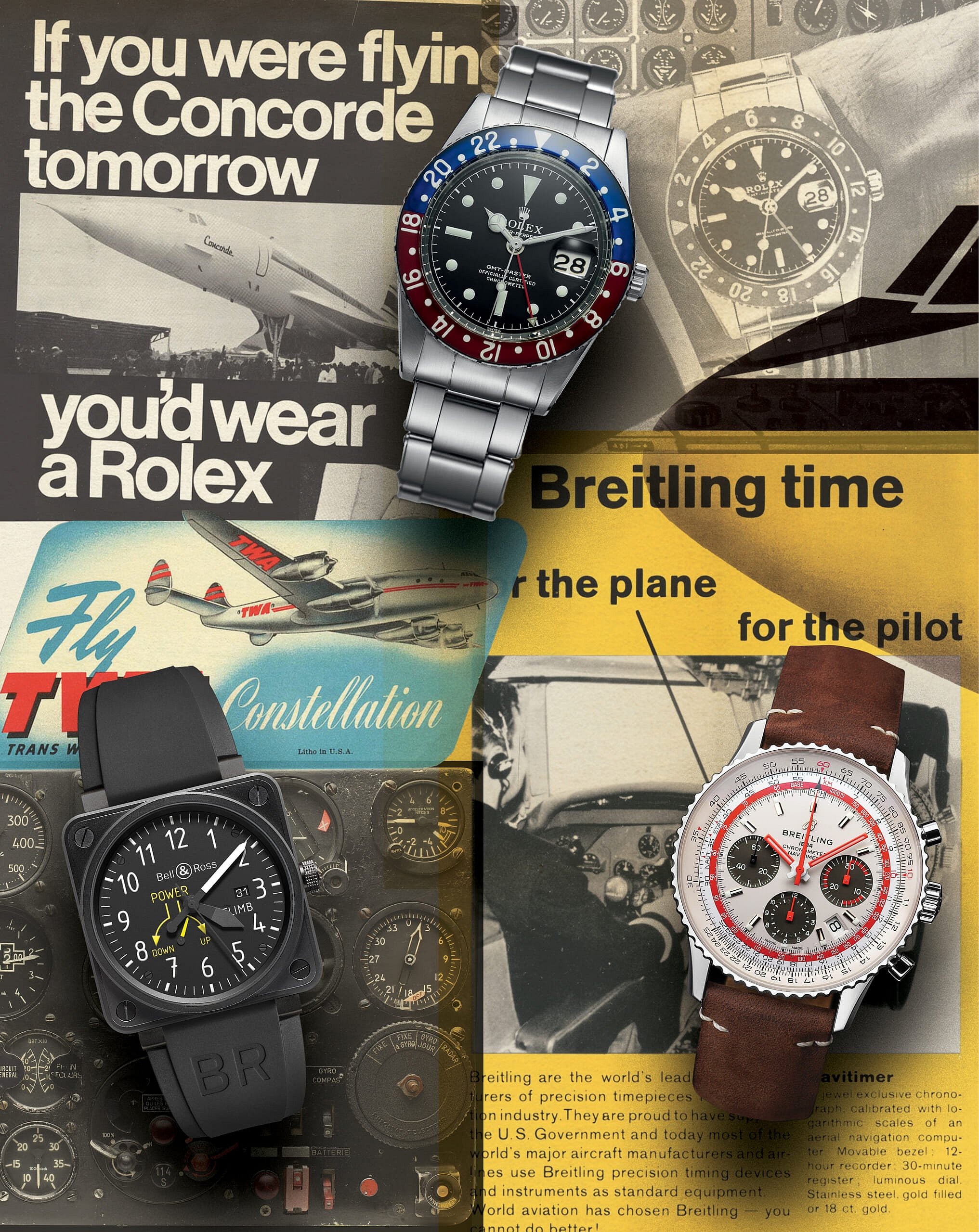 He also holds forth on more modern watches from the likes of IWC, Bell & Ross, Bremont, Patek Philippe, and Zenith, among others. “Pilots’ watches, unlike divers’ watches, don’t have to adhere to strict international criteria—e.g., water resistance, unidirectional bezel—before they can be marketed for professional use,” Bernardo notes.