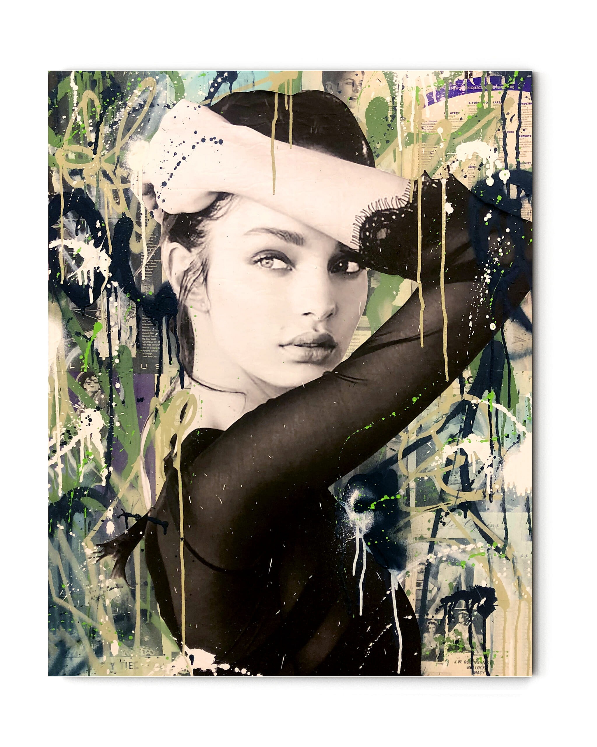 “As a contemporary artist, I aim to develop one of one pieces of fine art that bring iconic figures, vintage media and street style into one,” Seek One says via email. “My work stems from my background as a graffiti street artist and photographer while also depicting nostalgic influences from my childhood and world travels…Blurring the lines between urban culture and fine art has established my unique style of art bringing iconic images and street style together.”