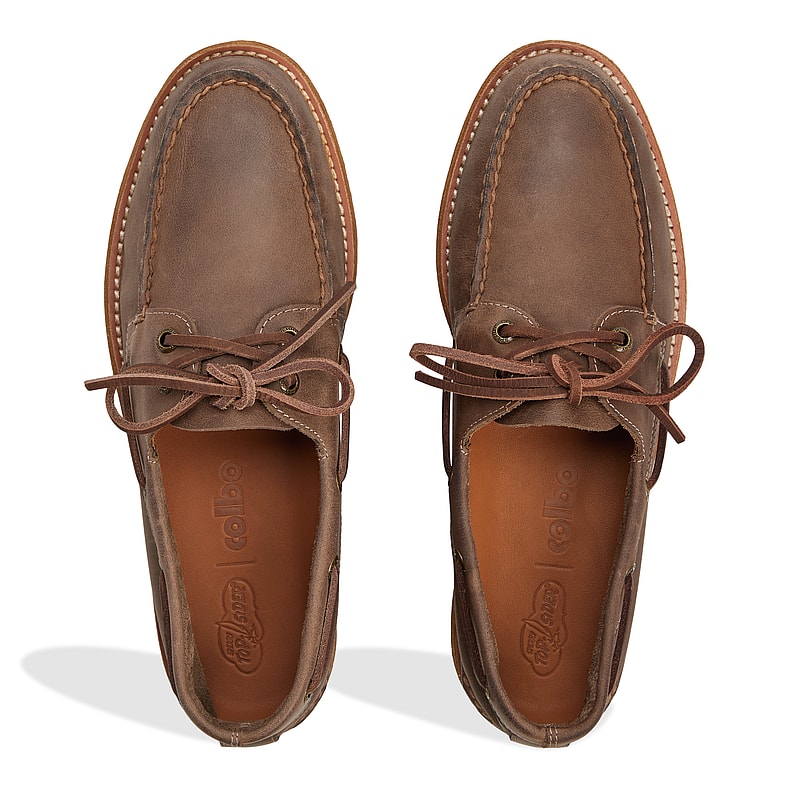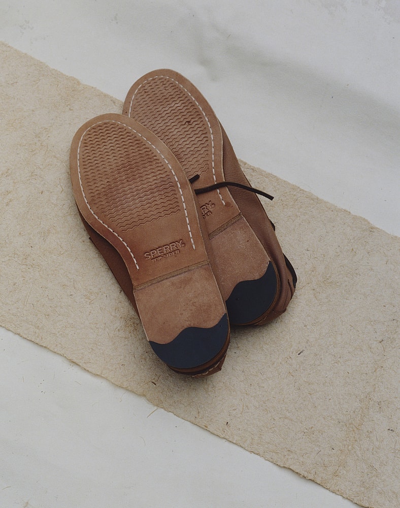 The limited-edition boat shoes are available in two buttery leather colorways: Distressed Taupe and Weathered Sahara.