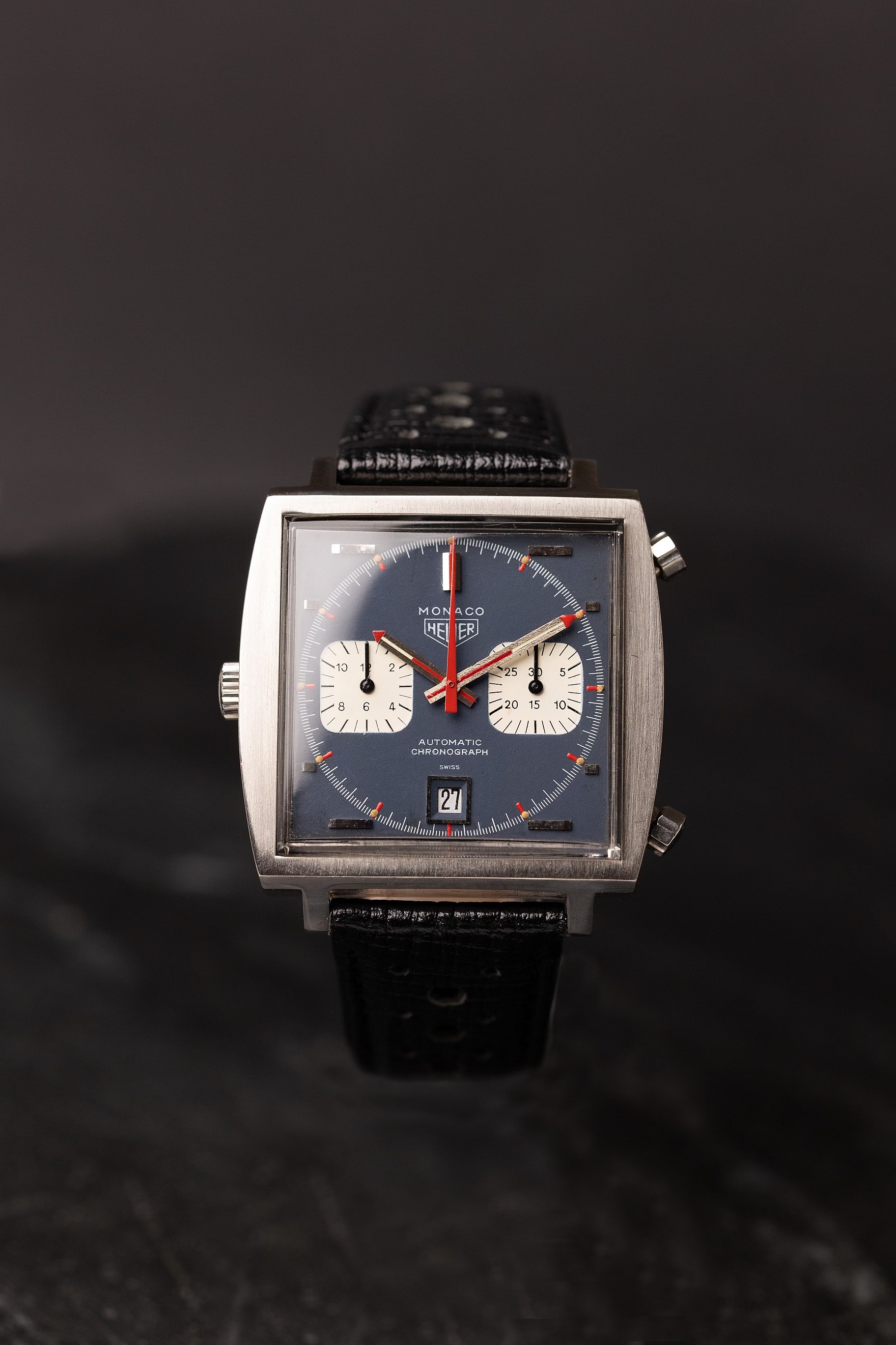Its delayed commercial success, however, came almost entirely because of the connection to McQueen, whose blue-dialed variant blended brilliantly with the famed Gulf-striped racing suit on-screen. That Hollywood prestige would help it find success again when Tag Heuer relaunched the original reference 1133B in 1998. Even when discussing the most recent Monacos like this F1-celebrating Mediterranean Blue variant, it’s fair to say that the entire, race-bred Monaco lineage owes a lot to the original “McQueen Monaco.”