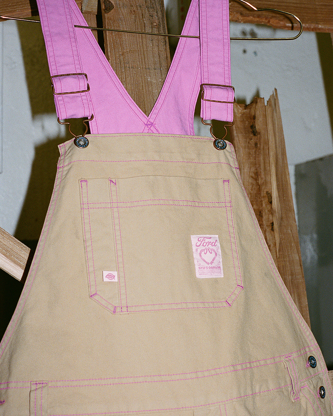 With that context, the new four-piece Dickie’s collection makes perfect sense. Khaki pants feature a waistband that can be worn inside out—Vogue points out that this a distinctly Generation Z trend—while khaki overalls feature pink straps and stitching.