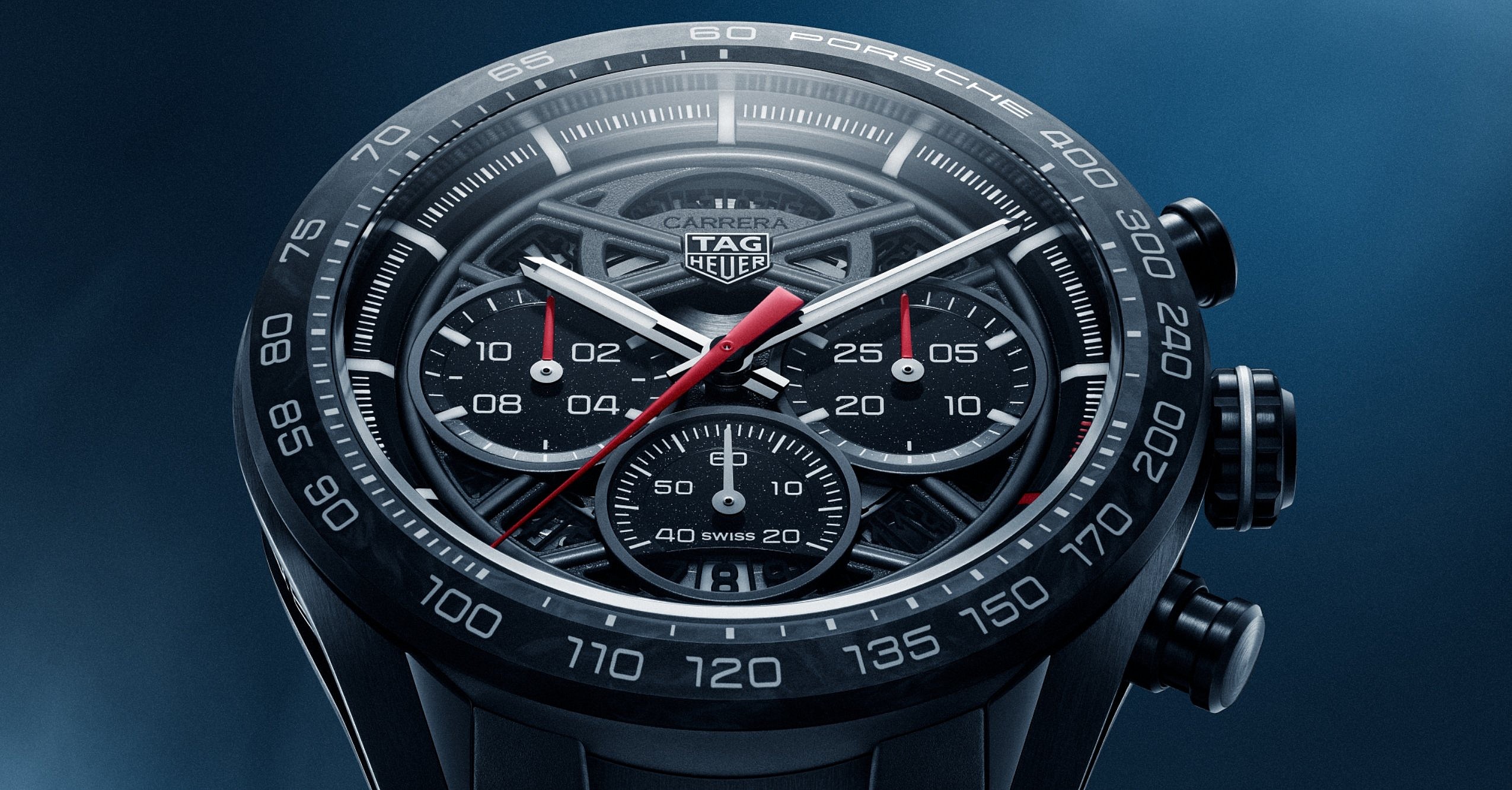 White, red and black design details dot the watch, a further homage to the shared history between Tag Heuer and Porsche, while a luminescent Porsche logo appears on the bezel.
