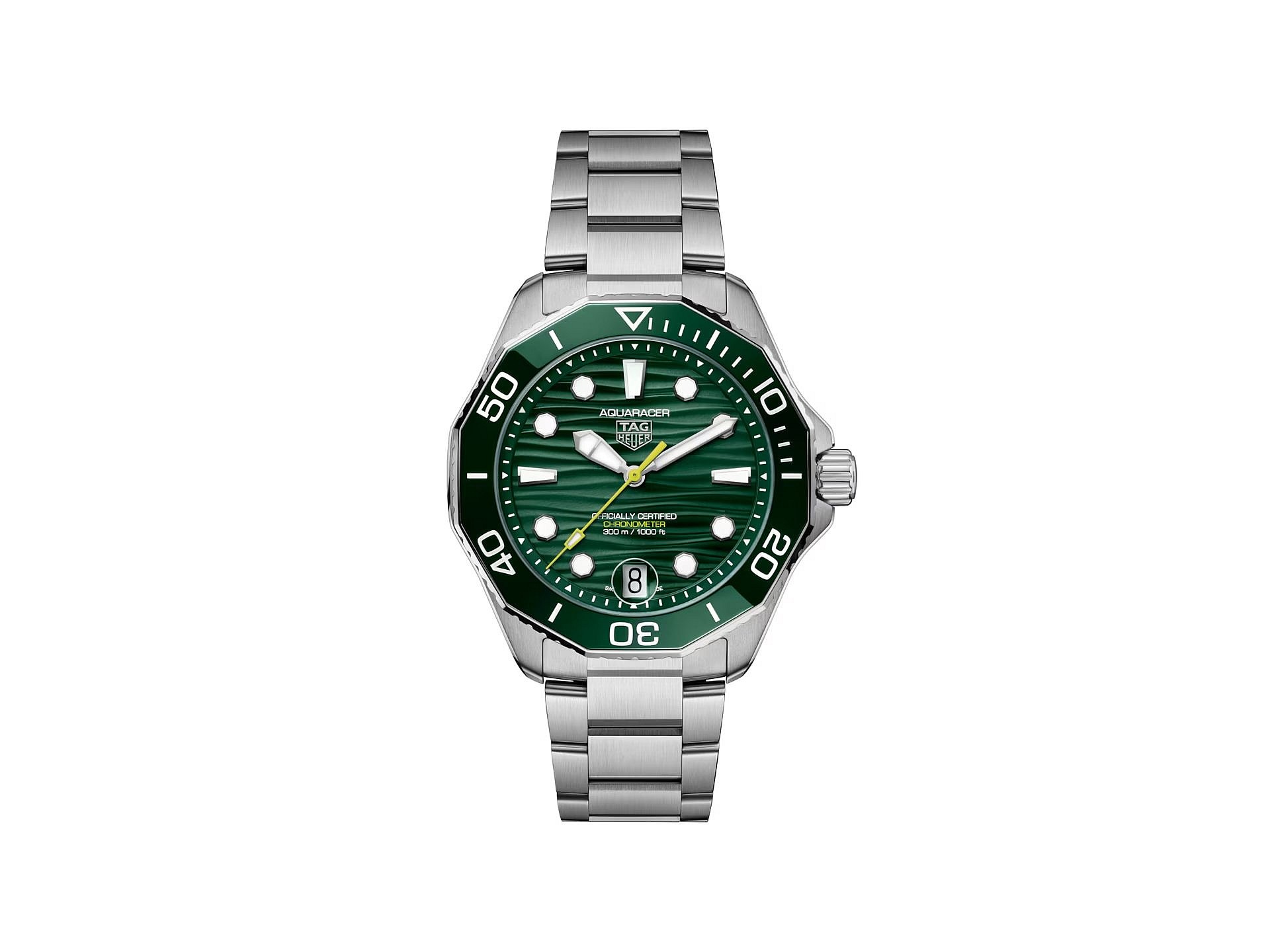 The Tag Heuer Aquaracer Professional 300 Date and the Tag Heuer Aquaracer Professional 300 GMT offer a sort of “pick your poison” approach, as the watchmaker notes its diving timepieces are “the quintessential watch for explorers of the deep and the high.”