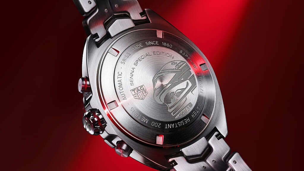 But the biggest Senna salute appears on the stainless steel caseback, where an engraving of his eyes peering through his helmet at the Tag Heuer shield logo appears below the words “Senna Special Edition.”