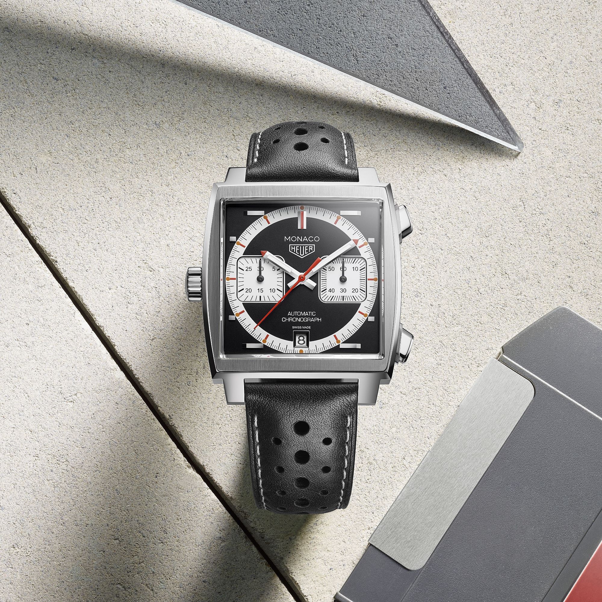 The auto racing-inspired, squared-faced stunner is the fourth in a line of exclusive tributes to the luxury Swiss watchmaker’s first Monaco model, which was originally released in 1969 in honor of the Monaco Grand Prix. Each reflects the style of a specific decade.