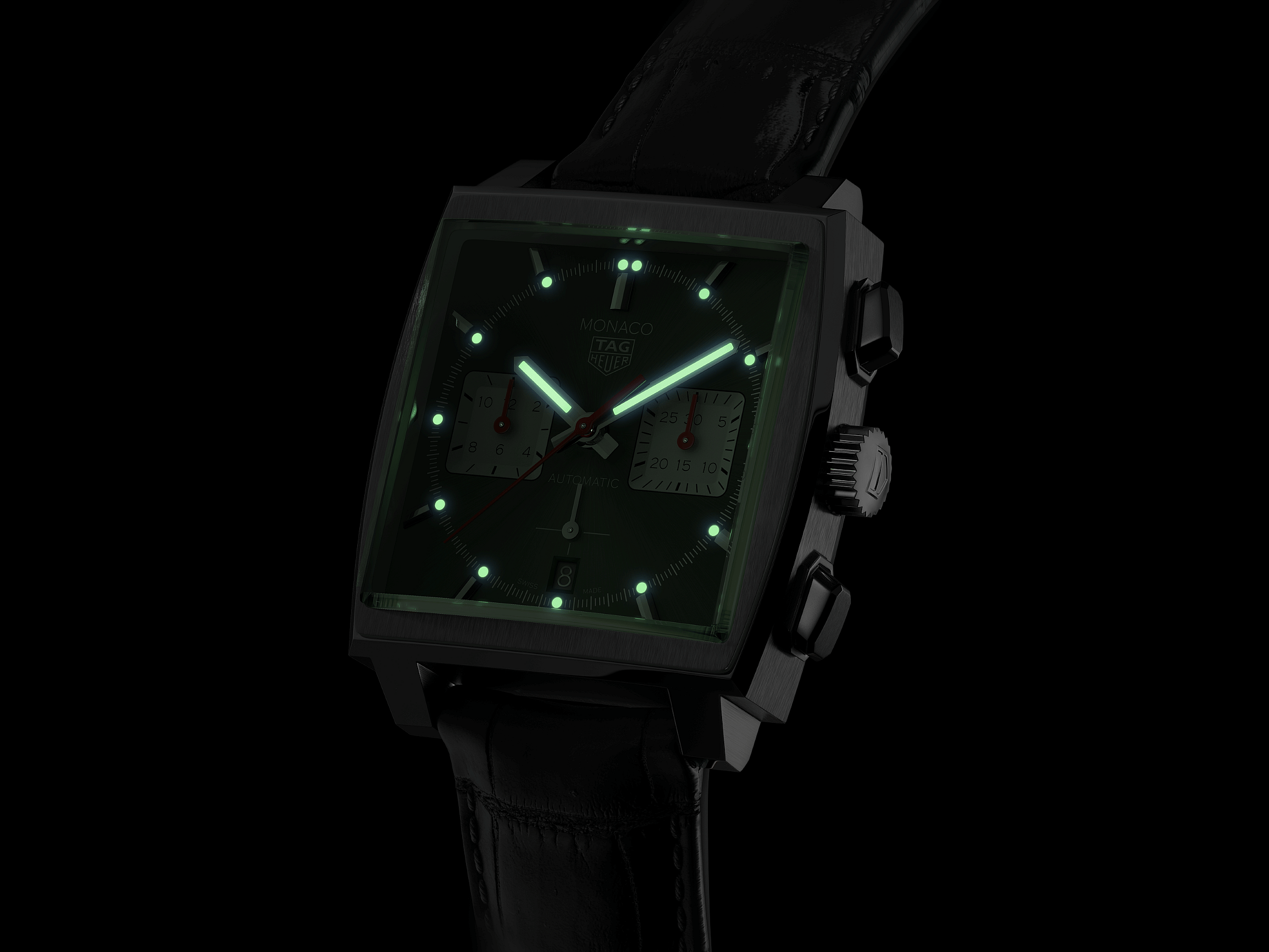 All are powered by Tag’s 168-component Calibre 02 automatic movement with an 80-hour power reserve, the same mechanism featured in the Swiss watchmaker’s recently unveiled Carrera Chronograph collection. Other similarities shared across the latest Monaco range included beveled and domed sapphire crystal, a sapphire case back, glow-in-the-dark rhodium plated indexes and hands, and 100 meters of water resistance.