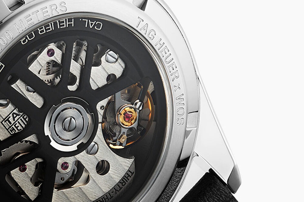 The movement is visible through the caseback itself, and a date window on the dial sits striking at the 6’o-clock spot. As with other takes on the Carrera, the dial forgoes hour numerals for an especially streamlined look.