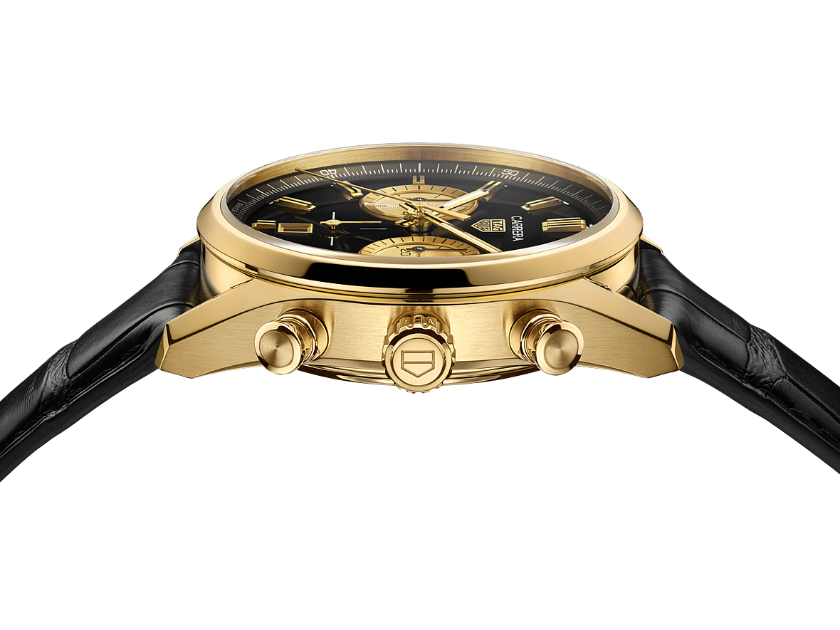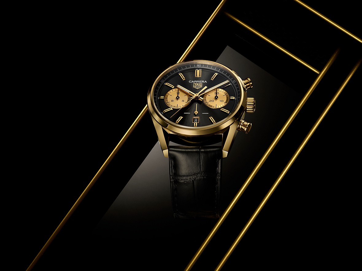 Priced from $21,500, the Tag Heuer Carrera Chronograph in black and gold is available to purchase now.