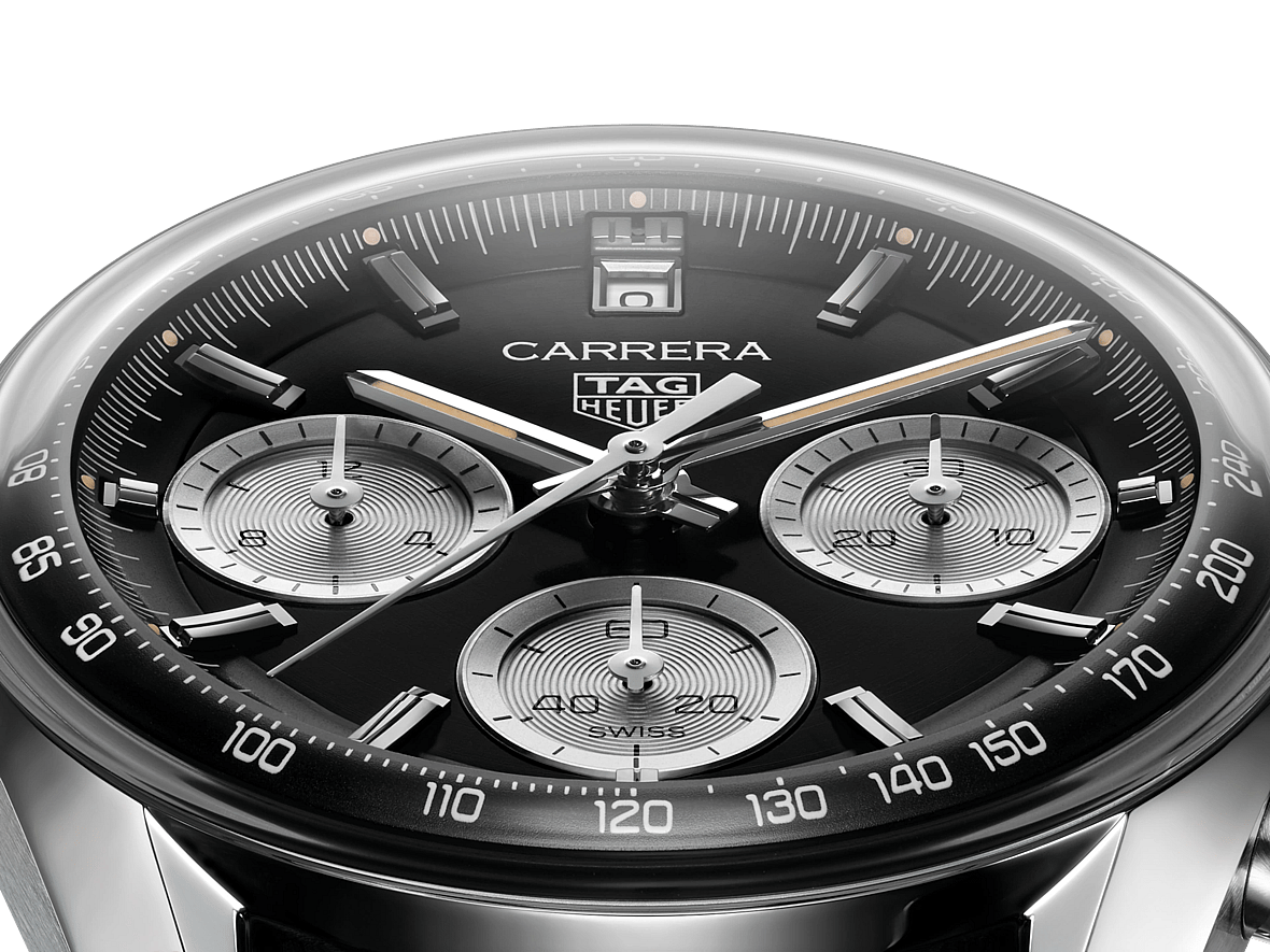 That means the sapphire crystal covers the tachymeter as well, in a nod to both 1960s Tag Heuer Carrera watches, as well as streamlined but effective, racing-focused performance (the original use case for the Carrera, after all).
