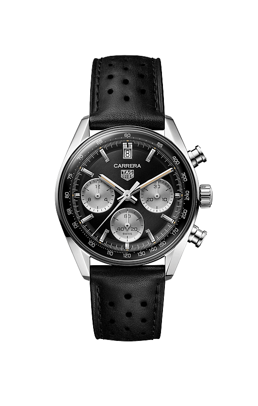 Each new model of the Tag Heuer Carrera Chronograph is outfitted with a pebbled racing strap to complete Tag’s signature streamlined design, with each retailing for $6,450.