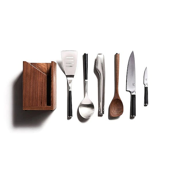 This set of kitchen must-haves (and a refined walnut base) represents top-of-the-line design that complements pop’s skills in the kitchen. $195