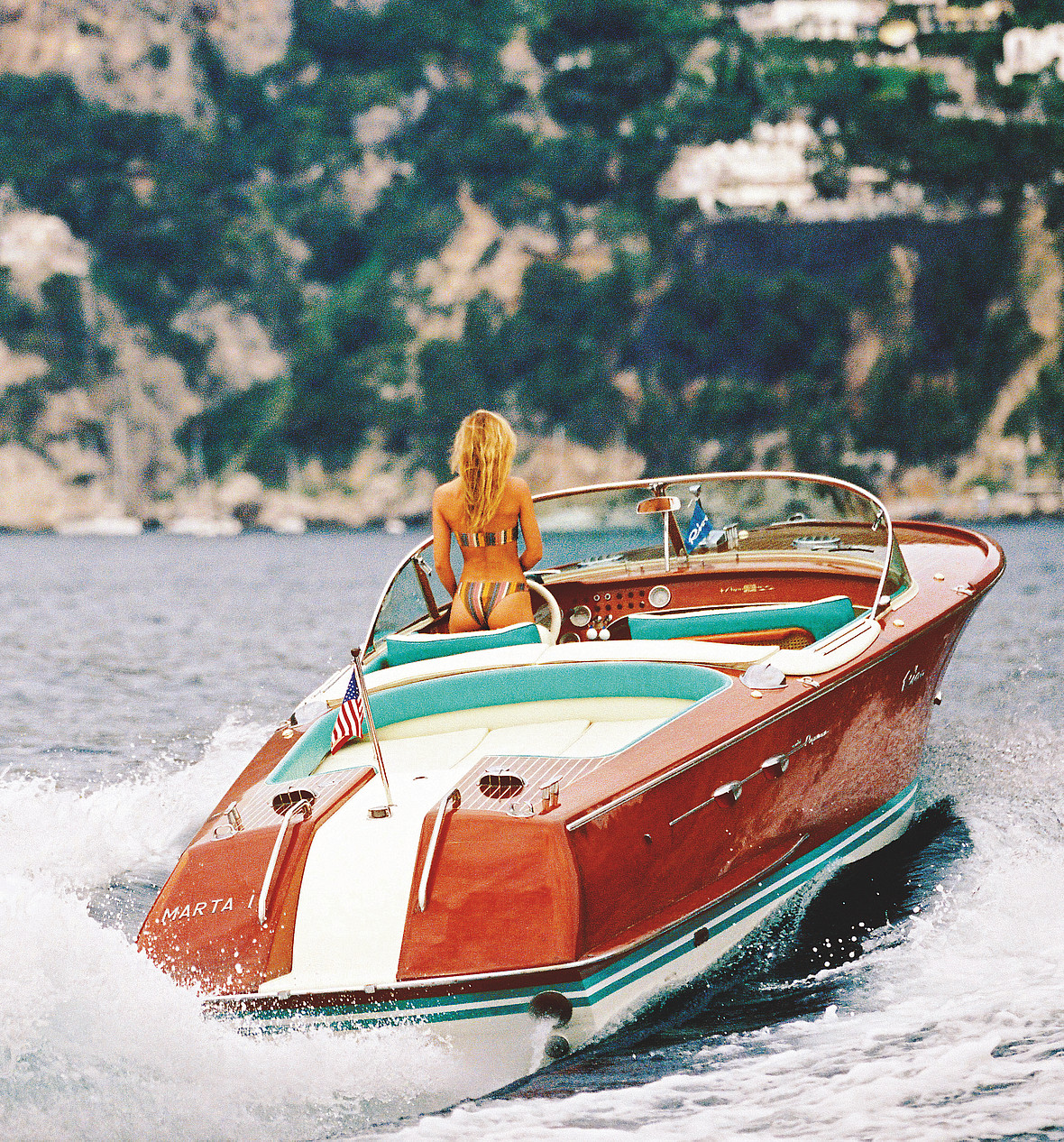 “No other boat has enjoyed the Aquarama’s elevated brand status,” the publisher notes. “Movie stars like Sophia Loren, Brigitte Bardot, Elizabeth Taylor and a coterie of aristocrats—including the royal family of Monaco and the Shah of Iran—were among the first to acquire it, which added to the mystique in the public’s eye. But most owners were high-net-worth individuals who were willing to buy an Aquarama for about the same price as a Rolls-Royce Silver Cloud,” then one of the most expensive cars in the world.