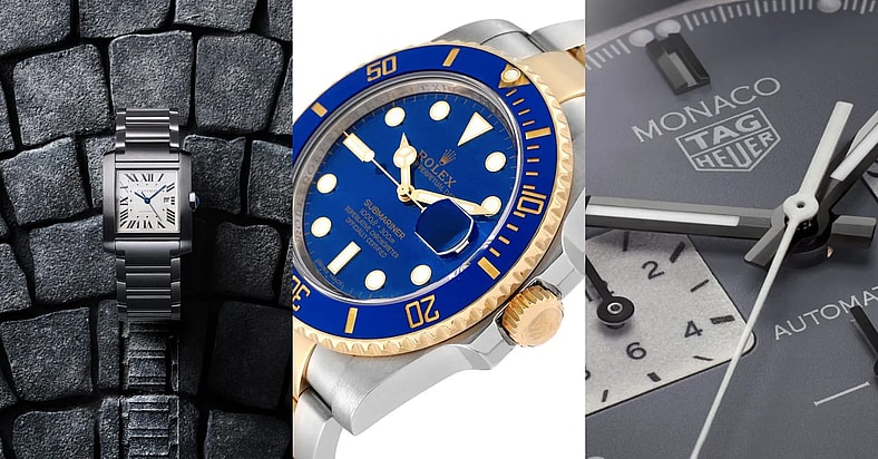 Watches with bold pops of color, like the famed two-tone Rolex Submariner, are also here to stay in the watch market, and as certain Rolex models increase in value, the race is on to score a coveted, classic timepiece.